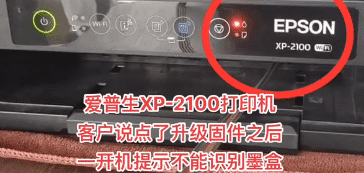 未经允许不得转载:远程打印机维修网 » 爱普生XP-2100打印机客户说点了升级固件之后一开机提示不能识别墨盒